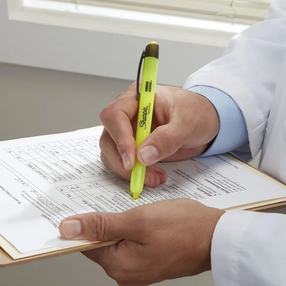 Highlight and underline important text in fluorescent yellow with these retractable highlighters. Featuring narrow chisel tips, these highlighters let you make thin or thick lines for custom marking. These Sharpie highlighters have smear free ink formulation to prevent smudges, and Safety Seal valves keep ink fresh while preventing leaks.
