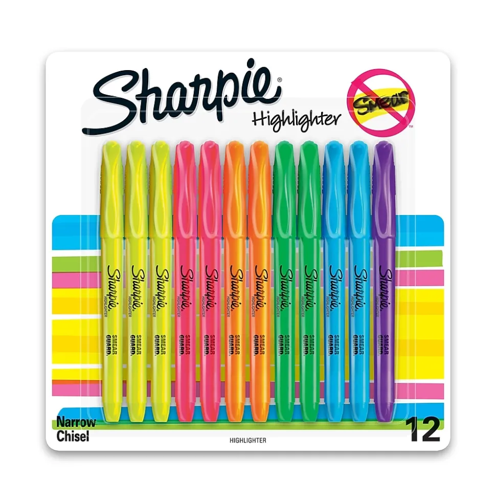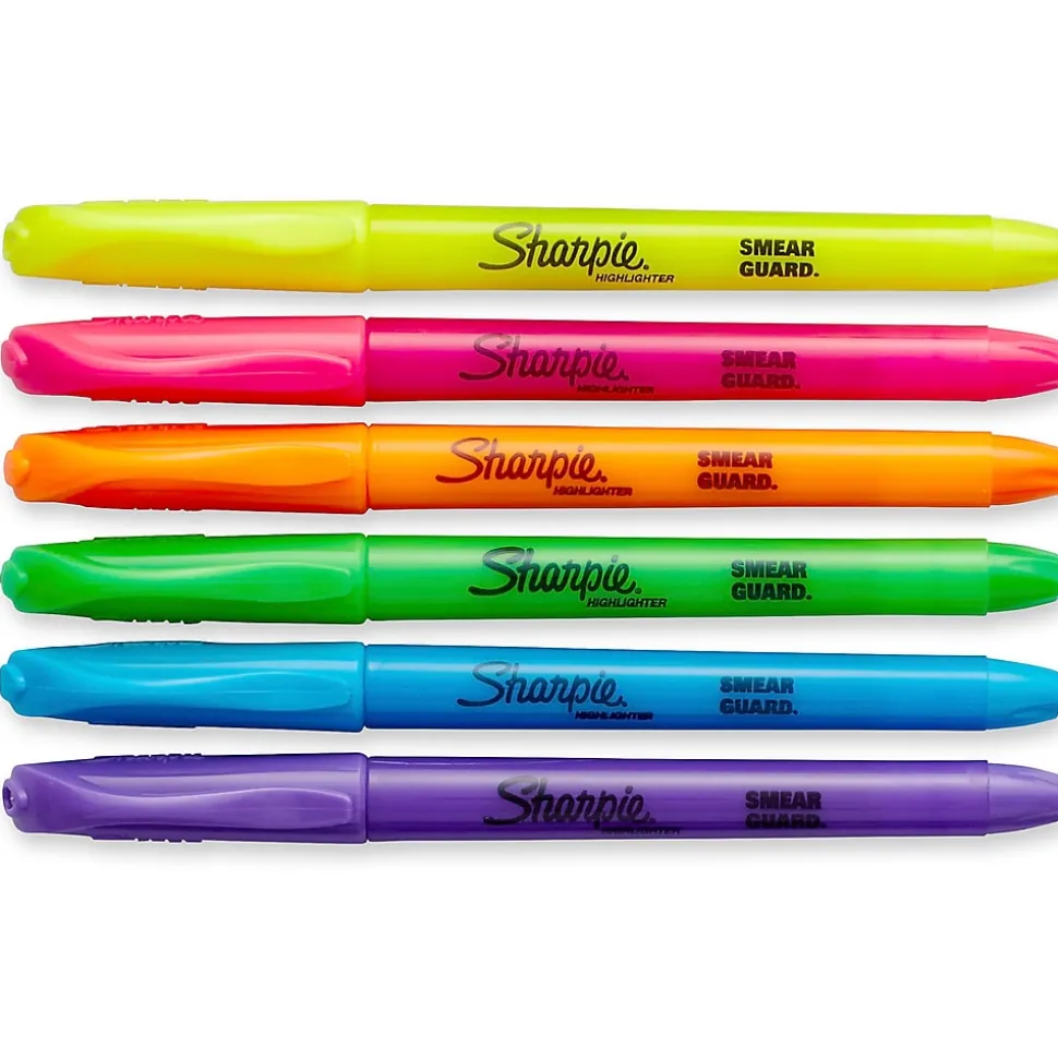 Perfect for when info is high priority and precision is a must, Sharpie Pocket Highlighters make everything highly visible. These versatile highlighters are designed to fit effortlessly in your pocket or clip to your shirt, so they’re easy to take with you anywhere. With brilliant colors in transparent, quick-drying ink and an easy gliding chisel tip that highlights and underlines both wide and narrow lines of text, Sharpie highlighters make your most important thoughts and notes jump off the page in an array of easy-to-read shades. It’s no wonder why Sharpie is the gotta have highlighter for travel itineraries, camping checklists, escape plans, and the rest of life’s major high points.