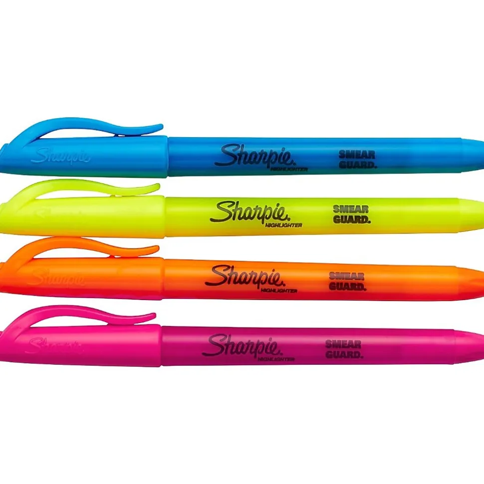 No highlighter shines as bright. Perfect for when info is high priority and precision is a must, the Sharpie pocket highlighters make everything highly visible. These versatile highlighters are designed to fit effortlessly in your pocket or clip to your shirt, so they’re easy to take with you anywhere. With brilliant colors in transparent, quick-drying ink and an easy-gliding chisel tip that highlights and underlines both wide and narrow lines of text, the Sharpie highlighters make your most important thoughts and notes jump off the page in an array of easy-to-read shades. These Sharpie highlighters are must-have for travel itineraries, camping checklists, escape plans, and the rest of life’s major high points.