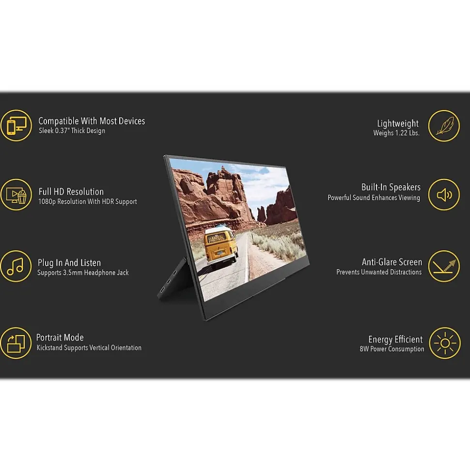 This SideTrak Solo Full HD LED anti-glare monitor provides a bright, colorful, and immersive viewing experience. Turn on the HDR mode while you’re watching movies or gaming on your portable monitor for an amazing true-to-life picture with low latency.
