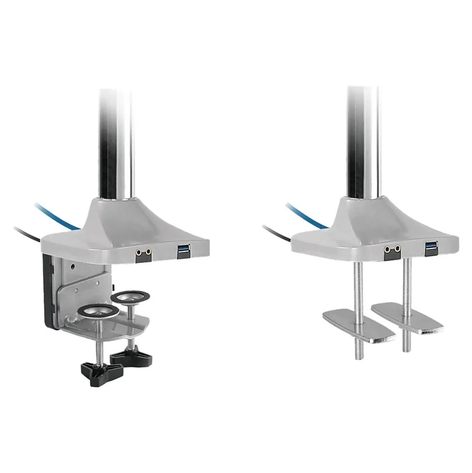 Premium Quality Durable Gas Spring – Provides smooth, precise and effortless height adjustment for the perfect viewing angle. Universal Fit – Compatible with VESA mounting patterns 75×75 and 100×100, fits most 13″ to 32″ flat and curved monitors. Full-motion Articulating Monitor Arms – Supports height adjustment up to 25.3″, 270° pan swivel, 360° arm swivel, monitor tilt angles of +/- 90° (upward/downward), and +/- 90° (left/right) pan angle. Front Desktop Accessible USB & Audio Connectors – Provides quick access for your USB device and speaker/microphone. Desktop Mounting Options – C-clamp and grommet mount bases are included for easy and quick installation. Detachable and Rotatable VESA Plate – Allows easy monitor installation or removal. Supports portrait or landscape monitor orientation.