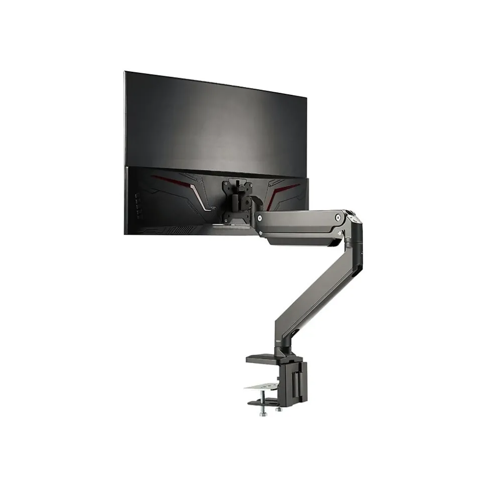 Gas spring assisted full-motion (tilt, swivel, rotate, and height adjustment) articulating singe monitor desk mount.