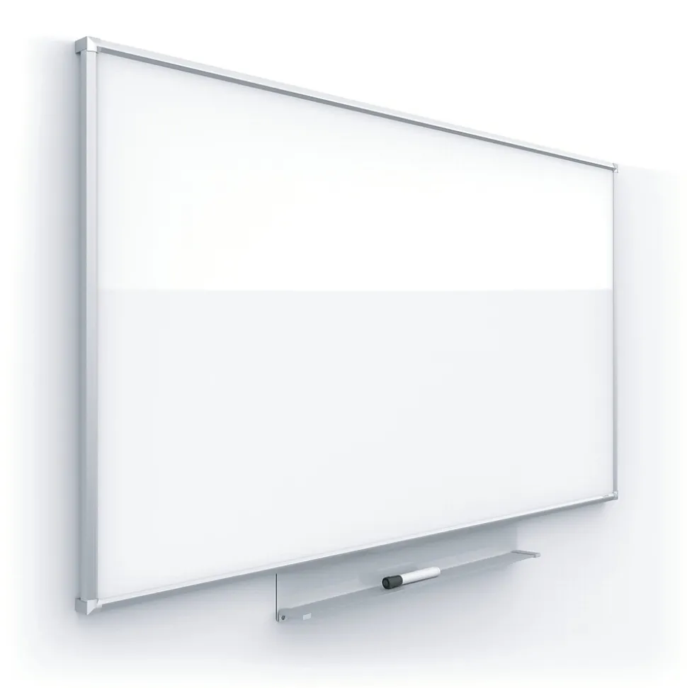 The Quartet® Silhouette™ Total Erase® Dry-Erase Board offers superior erasability for exceptional ghost and stain resistance. Slim frame design appears to float on the wall for a modern, minimalist look. Widescreen format with 16:9 aspect ratio. Simple to install with pass-through mounting. Hang vertically or horizontally. Board includes an accessory tray and a Quartet dry-erase marker. Limited 3 year warranty.