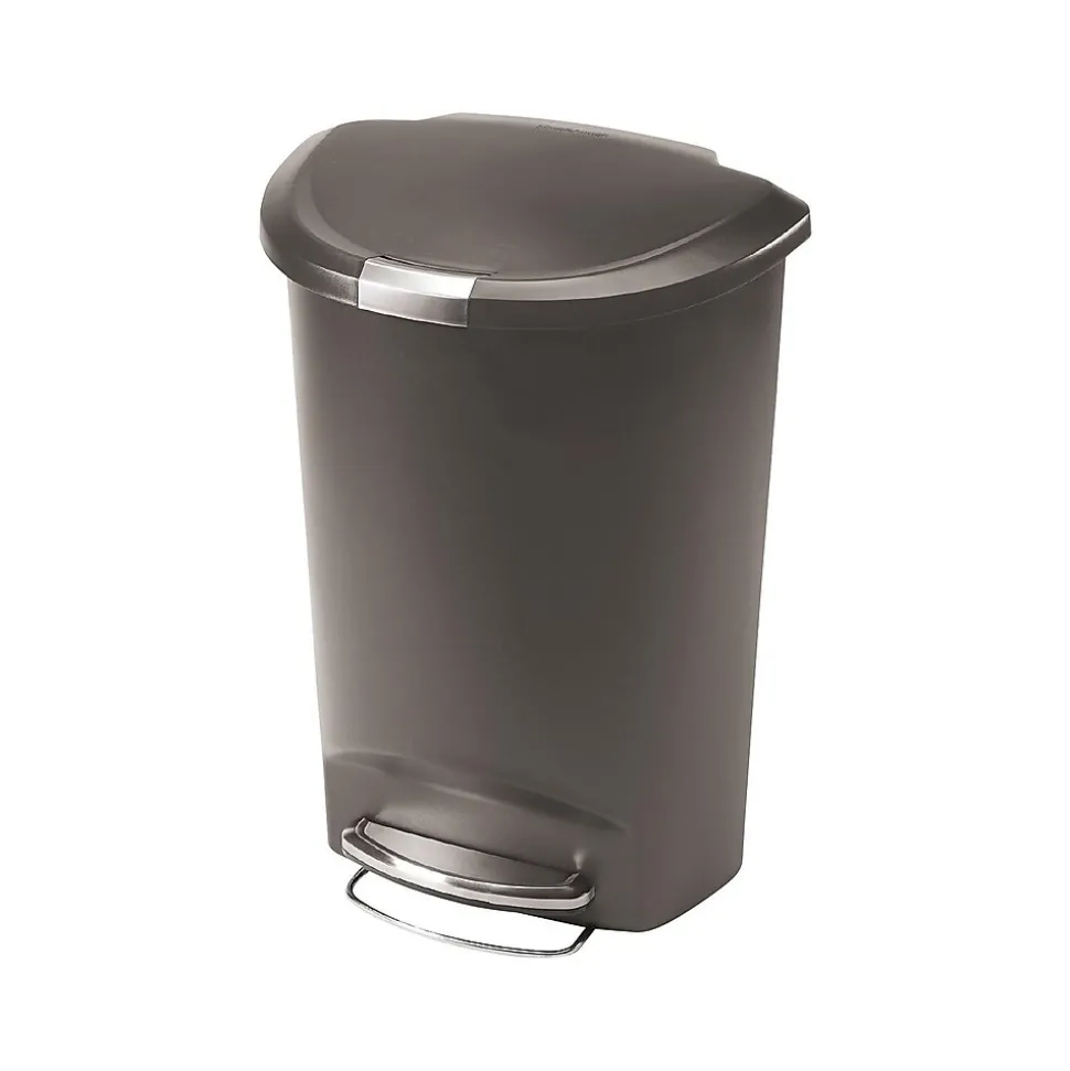 Large capacity makes this can and ideal choice for busy areas around the home. Strong steel pedal is designed to last. Slide lock helps keep trash in and pets out.