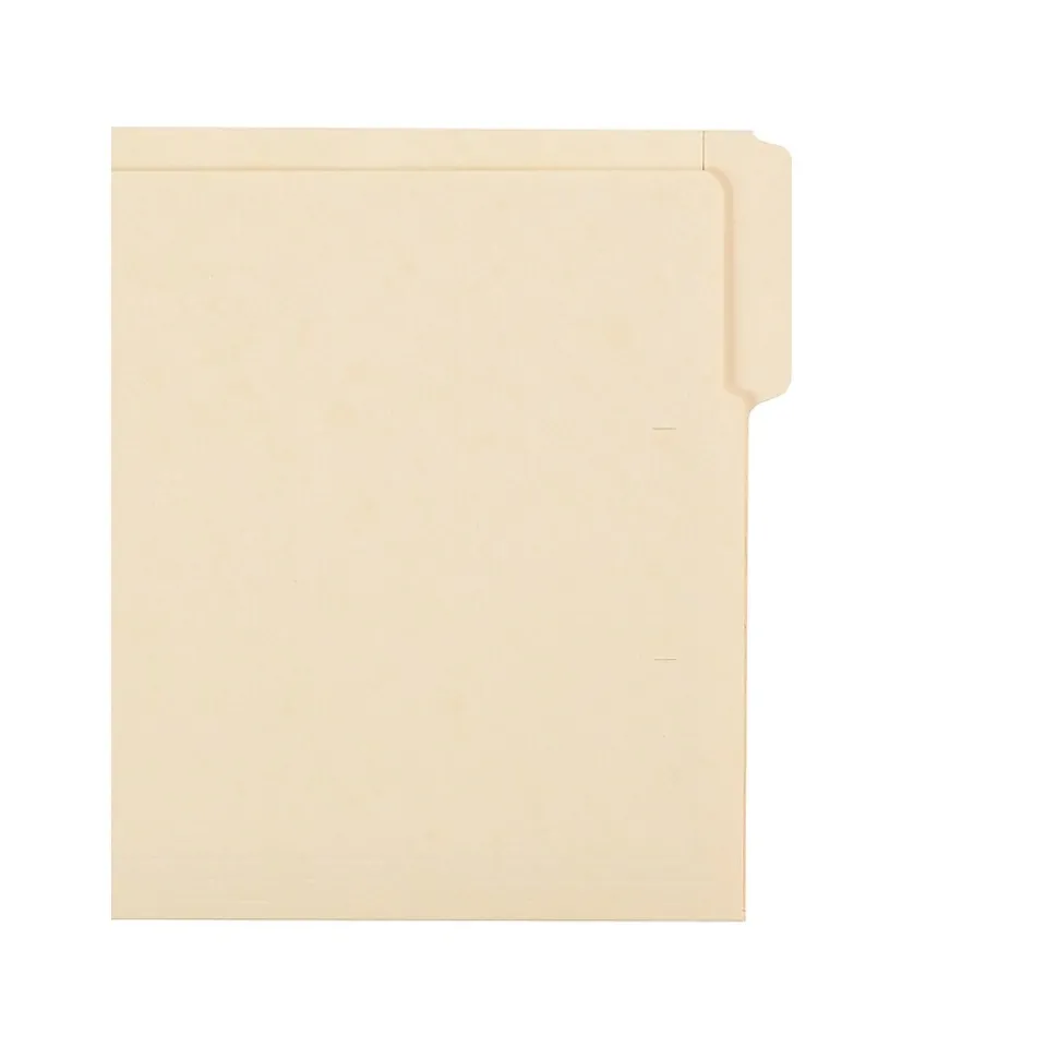 File documents and records efficiently with this 100-count box of Smead Shelf-Master end tab folders. The double thick tabs are durable enough for long-term use, and the embossed lines on the tabs let you add neat and legible labels. The undercut front panel of these Smead Shelf-Master end tab folders ensure labels are visible for quick identification in large filing systems.