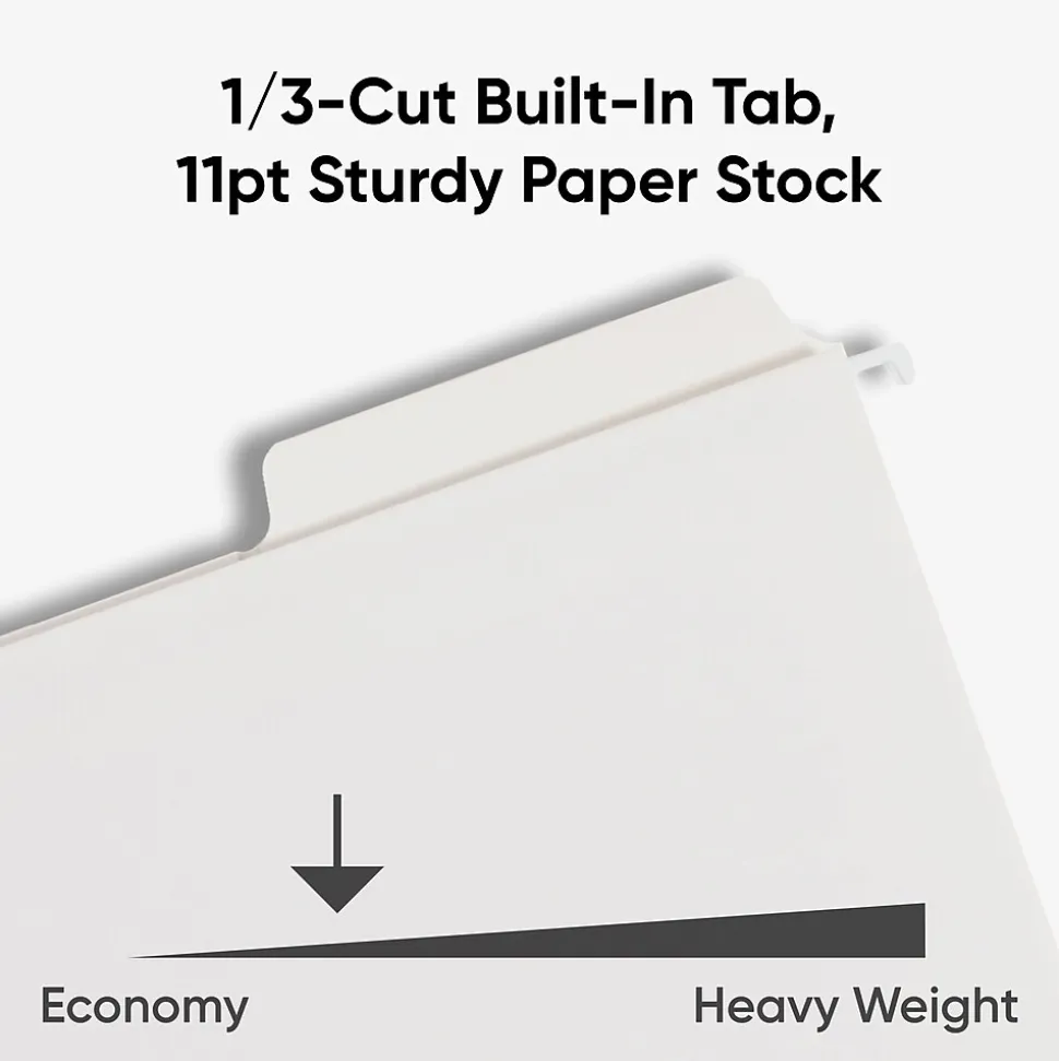 - ESSENTIAL AND RELIABLE: Keep all your important documents organized with these 11-point sturdy and durable white hanging file folders; built-in reinforced 1/3-cut tabs provide three positions for convenient labeling and identification