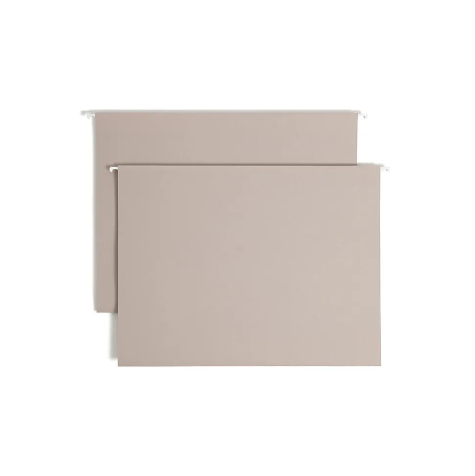 - Extra-capacity hanging folder is made of steel gray 14 pt. paper stock