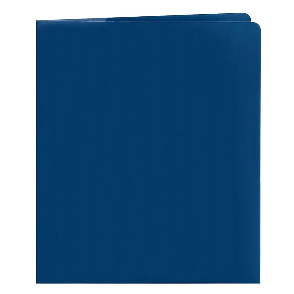 - Heavy-duty folders are made of blue card stock material in dark blue