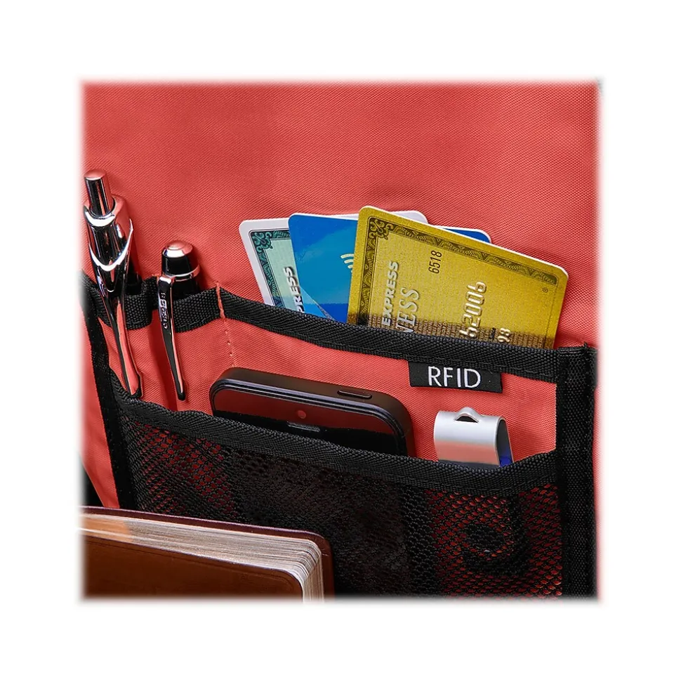 - RFID data protection pocket helps secure personal data encoded on your credit cards, IDs, and passports