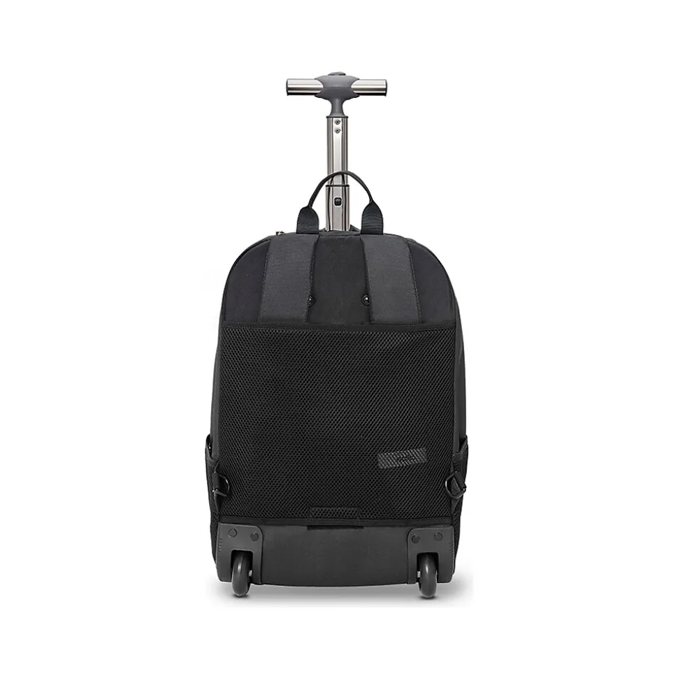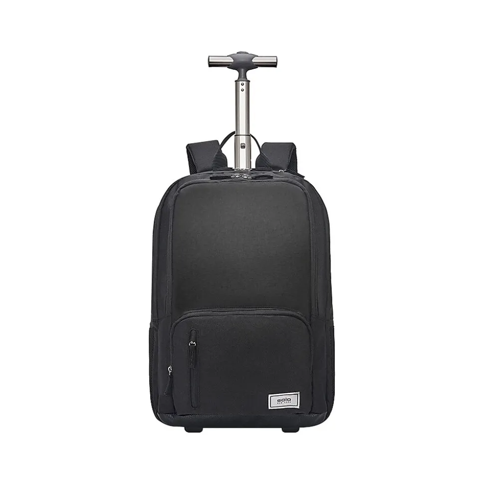 Keep files, assignments, and other papers organized with this Solo New York Bleecker backpack. Featuring a mesh padded pocket, this backpack is perfect for keeping up to 15.6″ laptops protected. An interior organizer section with key clip keeps CDs, pens, and other items secure. This Solo New York Bleecker laptop backpack is made of recycled PET polyester. The backpack can be easily transformed to roller with hideaway backpack straps.