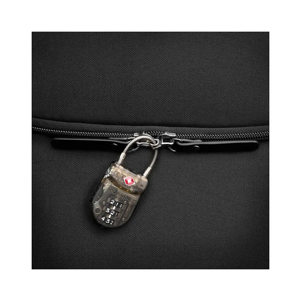 - Lockable zipper pulls on the main compartment, interior organizer section, and hidden back pocket