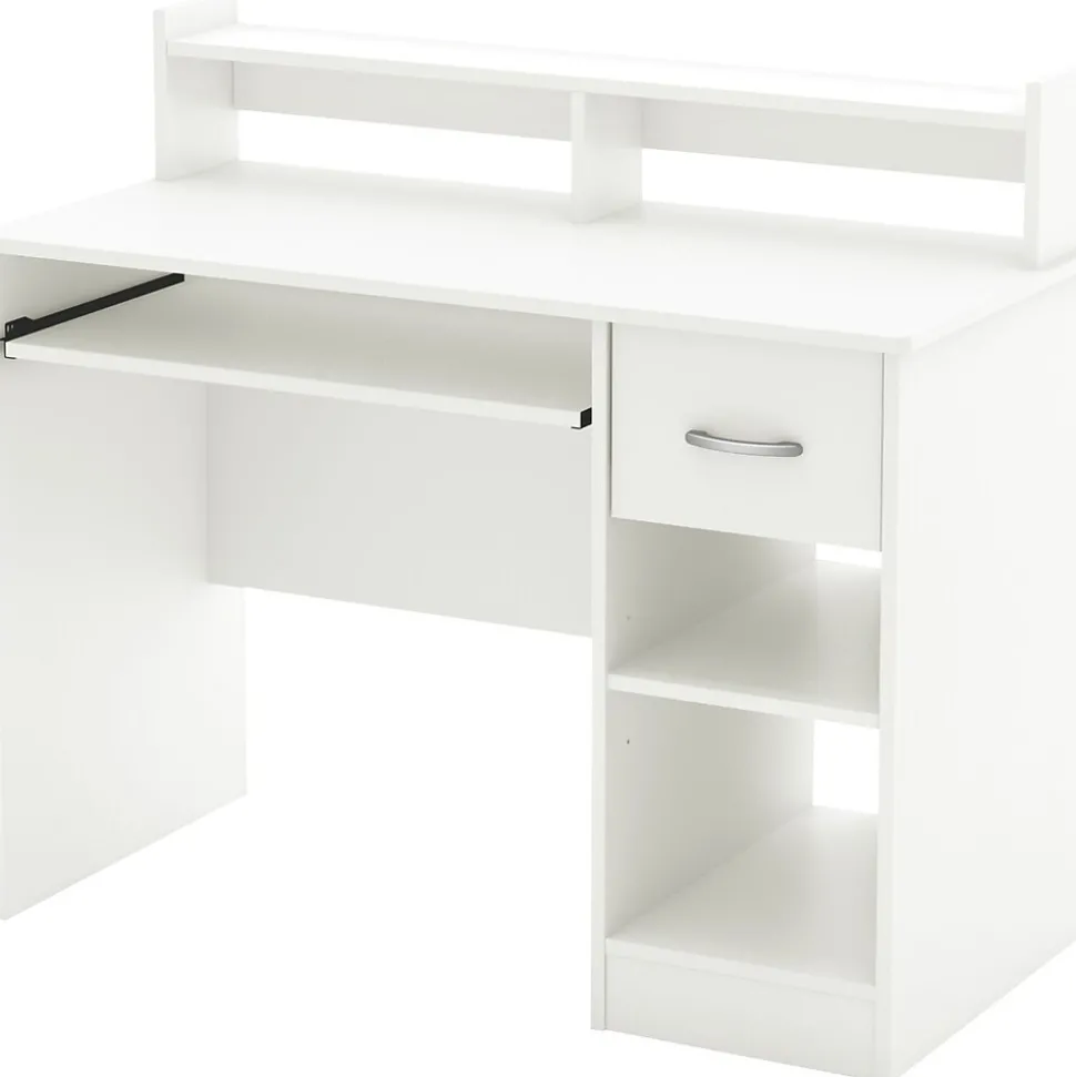 Need to organize your home office? This desk, from our Axess collection, is ideal for all your storage needs! The compact design features two open storage spaces and a drawer – all the space you need for a well-organized work environment. The work surface is perfect for a laptop computer. We’ve even added a slide-out tray for your keyboard, which frees up more space on the desk surface. The trendy neutral finish makes this piece ideal for rounding out all types of decor.