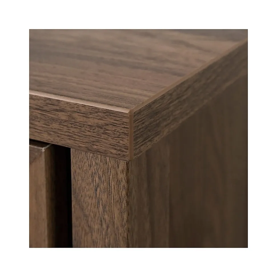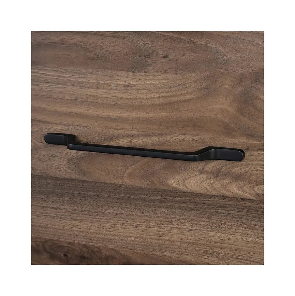 - Made of laminated particleboard in a natural walnut finish with black hardware