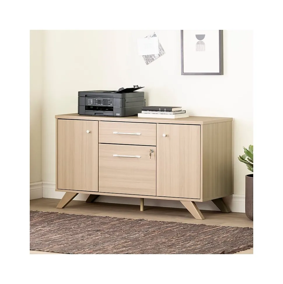 A complete workspace in the home is a must for any professional, whether it’s used full-time or part-time. This South Shore Helsy credenza can help you be even more organized, keeping your desk neat and orderly. Behind the doors are two fixed shelves and an adjustable one, so you can choose the height that works best for you. The top drawer can be a catch-all for your pens and pencils, paper clips, binder clips, etc. Essentially, all those little items you need for your work. The large file drawer underneath can hold all your important documents and contracts, and it locks with a key, so you can be sure they’ll remain confidential. When it comes down to it, though, the real advantage of a storage piece like this is its versatility. You can use this credenza for office supplies and to keep souvenirs, DIY tools, and materials for your kids’ pastimes. The whole family will find it useful.