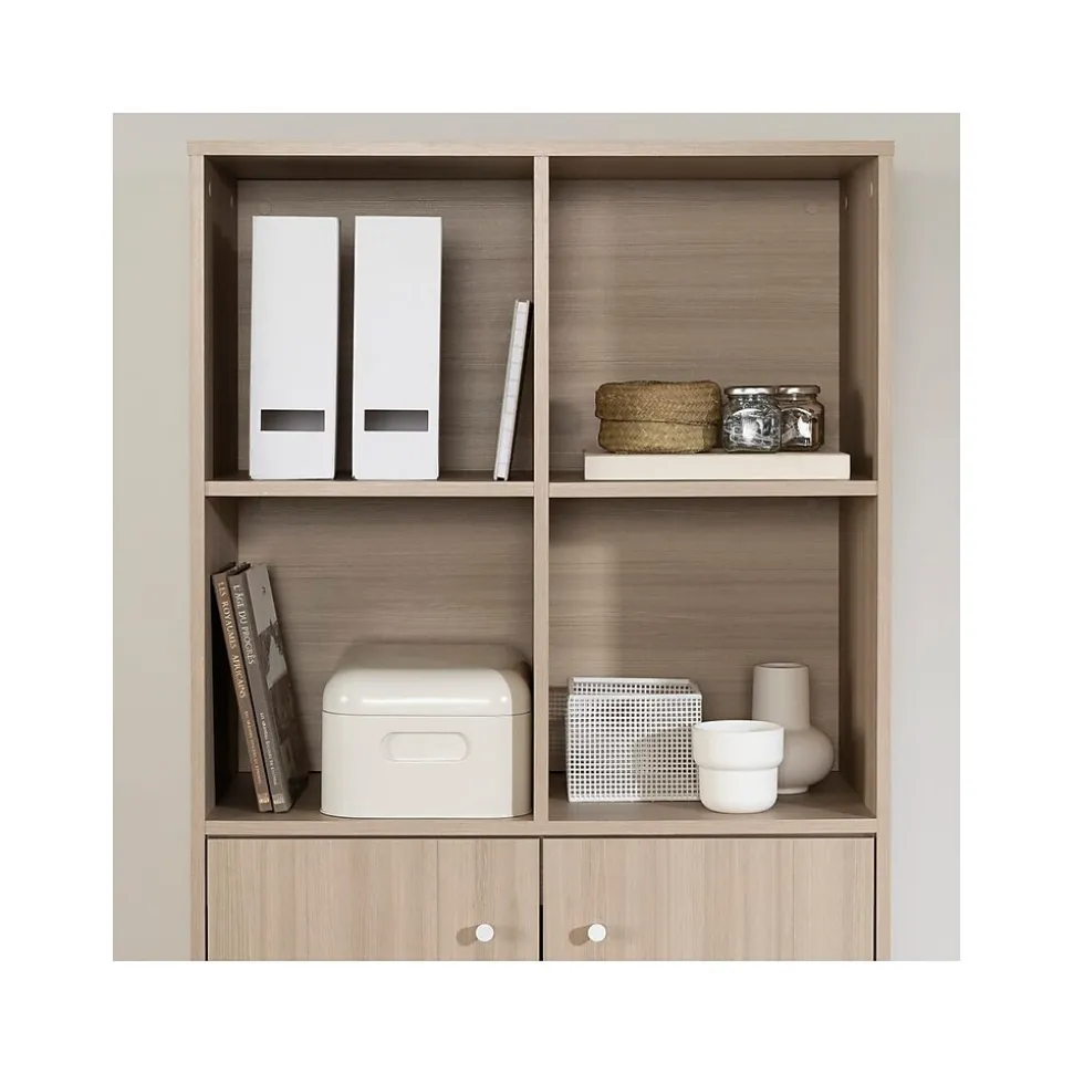 Wherever you put this South Shore Helsy bookcase, in your home office or a shared workspace, it’ll help you be more organized and efficient. The four open cubes can be used to store books, pens and pencils, binders, notebooks, and any other office supplies, while keeping them within easy reach. It also has two doors, behind which there’s one removable shelf, a great space for keeping files, contracts, or paper and printer ink. This bookcase lets you have a totally uncluttered office for a more ergonomic and better organized space. It’s definitely a must-have for entrepreneurs and professionals!