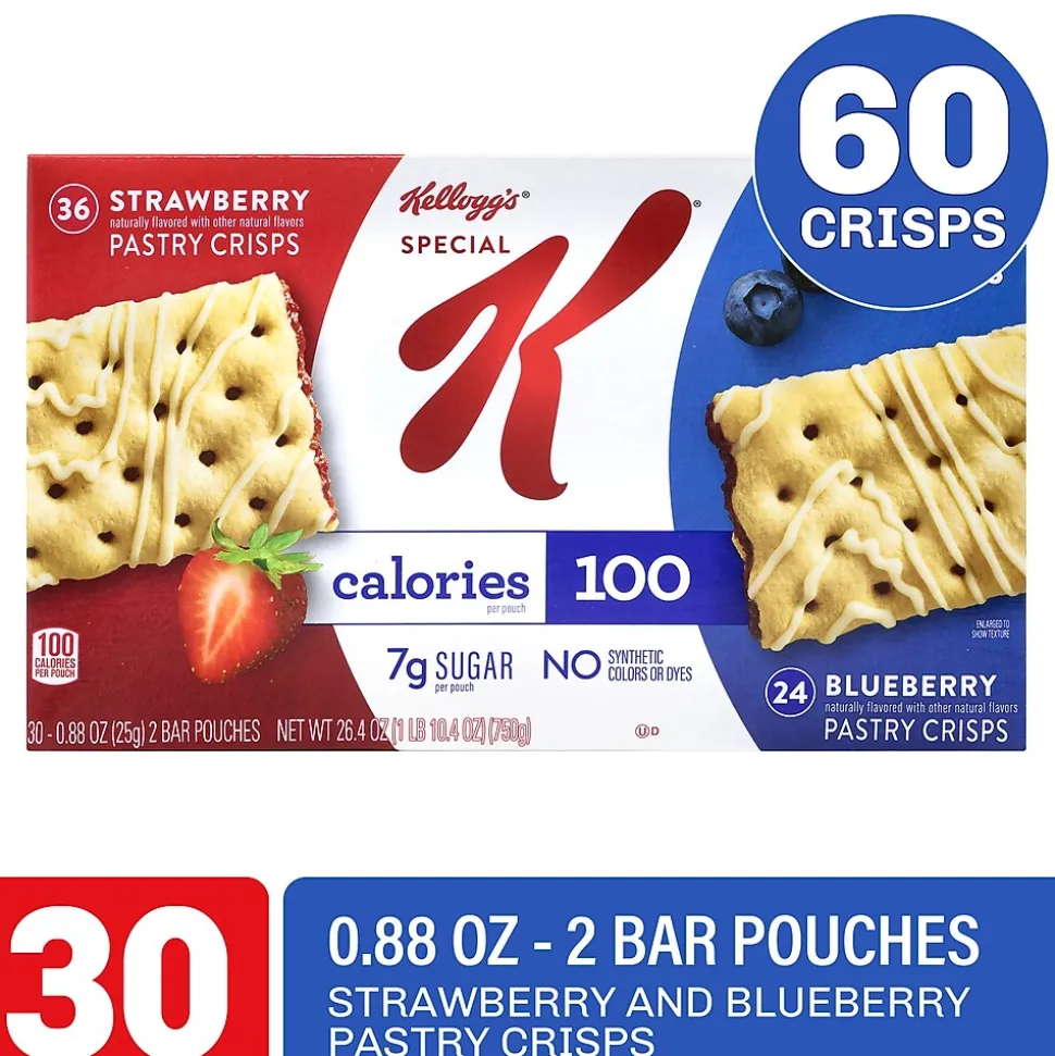 Enjoy a light, satisfying snack any time of the day with Kellogg’s Special K Pastry Crisps. These light, crispy pastry crisps are flavored with vanilla icing to create a sweet, crunchy treat. These bakery-inspired Pastry Crisps are little slices of heaven. Light and just right, two Special K Pastry Crisps are only 100 calories, with no cholesterol. The crisps are individually wrapped and fit easily in a lunchbox, backpack, or handbag for a quick afternoon snack.