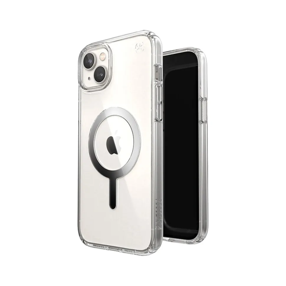 The Speck Presidio Perfect-Clear MagSafe case is a super-protective, pocket-friendly case. Innovative materials allowed Speck to create a case that stays perfectly clear longer. Highly protective yet slim, this case is pocket-friendly, and is built with precision magnets that work reliably with all Apple MagSafe chargers and accessories. Clearly stylish, but also built tough for life’s rough moments with the clear impact technology. Speck’s proprietary clear phone-cushioning rubber compresses on impact to protect your phone and resist damage. Naturally, the Presidio Perfect-Clear MagSafe case is real-world tested to withstand drops up to 13′. So, no matter what happens, you can be confident you’re protected. The case also features Microban antimicrobial product protection that delivers up to a 99% reduction in stain- and odor-causing bacteria on the case, creating a cleaner surface. Plus, the raised bezel helps protect your screen from scratches, chips, or the dreaded spiderweb shatter if your phone falls and lands facedown.