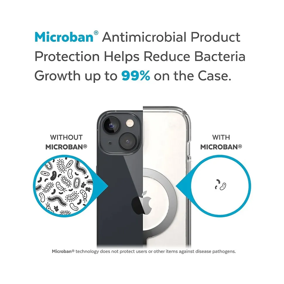 - Microban antimicrobial product protection reduces bacteria growth on the case up to 99%
