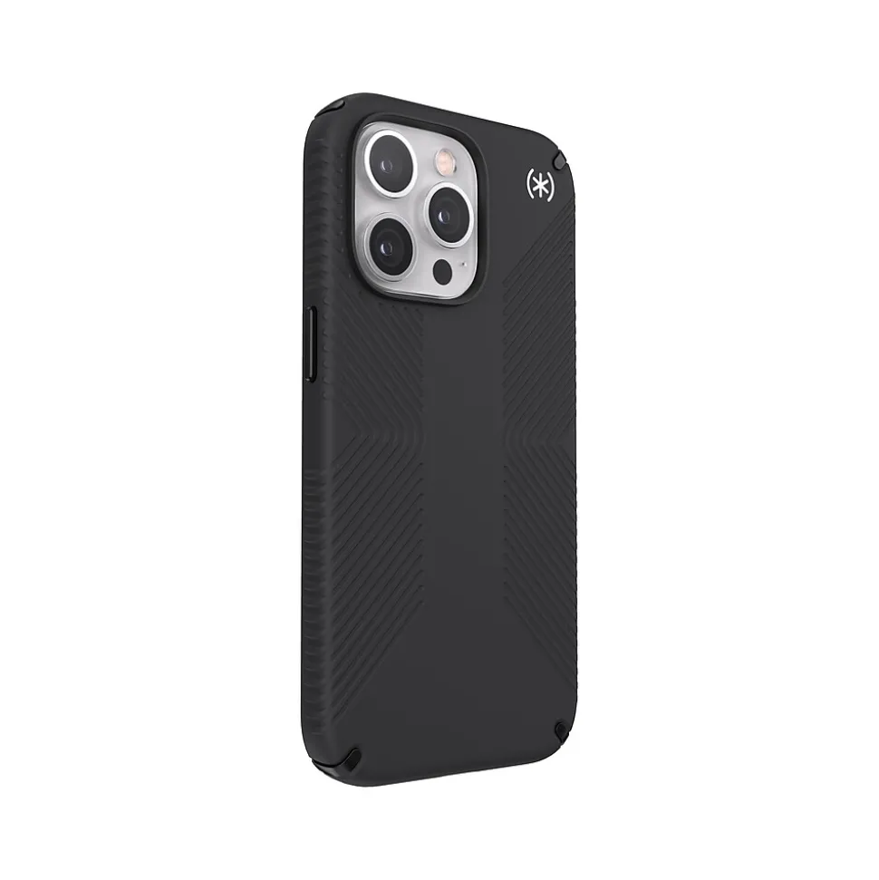 Speck Presidio2 Grip is a super protective and pocket-friendly case that is now 20% slimmer, with a soft-touch finish for ultimate comfort plus innovative no-slip inverted grips. The inverted grip is designed to provide longevity, durability, and a strong grip for more confidence when texting, talking, or taking photos. Not only is this case stylish, but also the Presidio2 Armor Cloud technology makes it tough for rough moments. The perimeter of the case is lined with air capsules. On impact, they compress and suspend your phone on a cushion of air, just like an airbag. Tested in the real world to withstand drops of up to 13′, so you’ll be confident knowing your phone will be protected. Now even slimmer, this durable and sleek case is optimized for easy wireless charging with MagSafe and Qi for a seamless charge with all your accessories. For the ease of use you can feel, experience a precise fit tailor-made for your device with the addition of enhanced ultra-responsive buttons for smoother clicks and volume control. It also features an antimicrobial treatment from Microban that delivers a 99% reduction in stain- and odor-causing bacteria on the case, creating a cleaner surface. If that wasn’t enough, the case also features a raised bezel. This added edge helps protect your screen from scratching and shattering in case your phone falls and lands facedown.