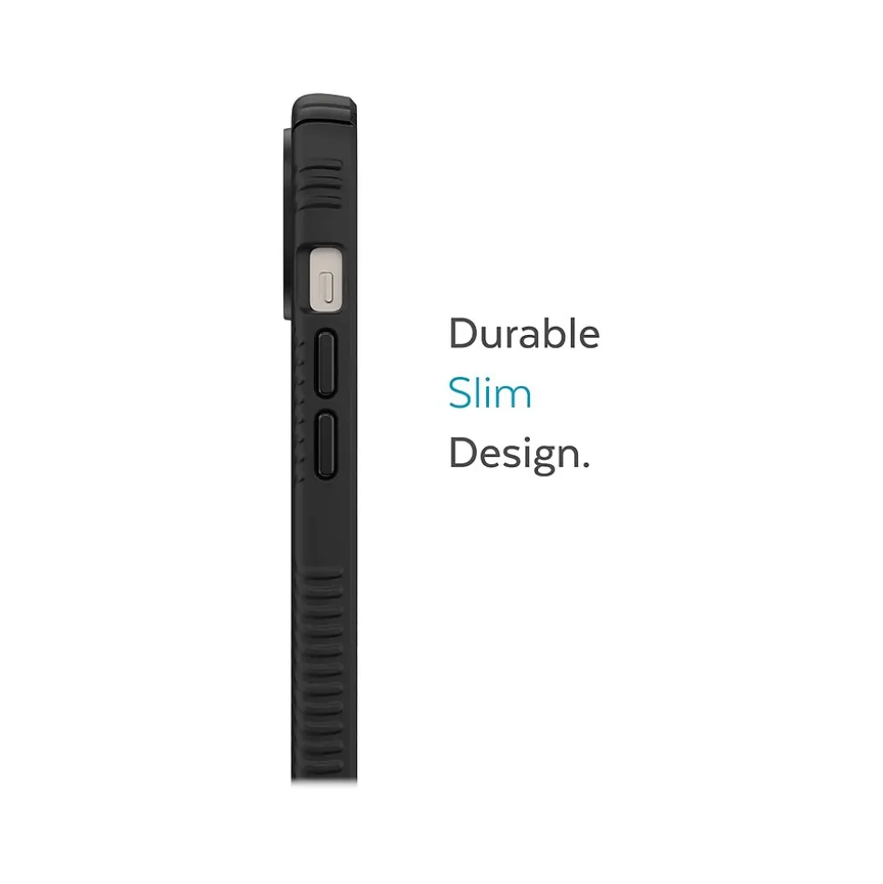 The Speck Presidio2 Grip MagSafe is a super protective and pocket-friendly case that has a soft-touch finish for ultimate comfort, plus nonslip grips for more confidence when texting, talking, or taking photos. Not only is this case stylish, but Presidio2 Armor Cloud technology makes it tough for rough moments. The perimeter of the case is lined with air capsules: on impact, they compress and suspend your phone on a cushion of air, just like an airbag. This case has been tested to withstand drops of up to 13′, so you’ll be confident knowing your phone is protected. Enjoy a precise, tailor-made fit for your device with the addition of enhanced ultra-responsive buttons for smoother clicks and volume control. It also has a built-in antimicrobial treatment from Microban that delivers a 99% reduction in stain- and odor-causing bacteria, creating a cleaner case surface. If that wasn’t enough, it also features a raised bezel: this added edge helps protect your screen from scratching and shattering if, and, or when your phone falls and lands face-down.