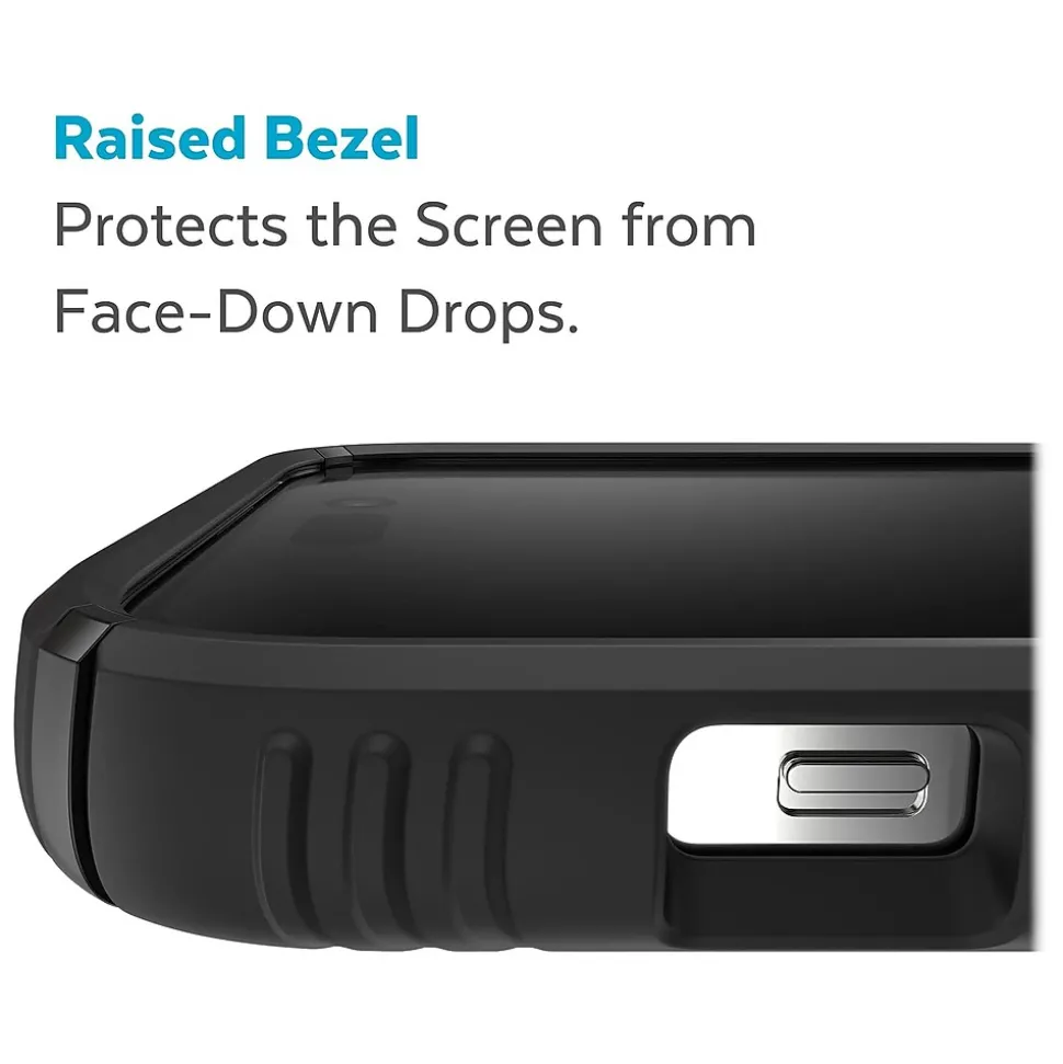 The Speck Presidio2 Grip MagSafe is a super protective and pocket-friendly case that has a soft-touch finish for ultimate comfort, plus nonslip grips for more confidence when texting, talking, or taking photos. Not only is this case stylish, but Presidio2 Armor Cloud technology makes it tough for rough moments. The perimeter of the case is lined with air capsules: on impact, they compress and suspend your phone on a cushion of air, just like an airbag. This case has been tested to withstand drops of up to 13′, so you’ll be confident knowing your phone is protected. Enjoy a precise, tailor-made fit for your device with the addition of enhanced ultra-responsive buttons for smoother clicks and volume control. It also has a built-in antimicrobial treatment from Microban that delivers a 99% reduction in stain- and odor-causing bacteria, creating a cleaner case surface. If that wasn’t enough, it also features a raised bezel: this added edge helps protect your screen from scratching and shattering if, and, or when your phone falls and lands face-down.