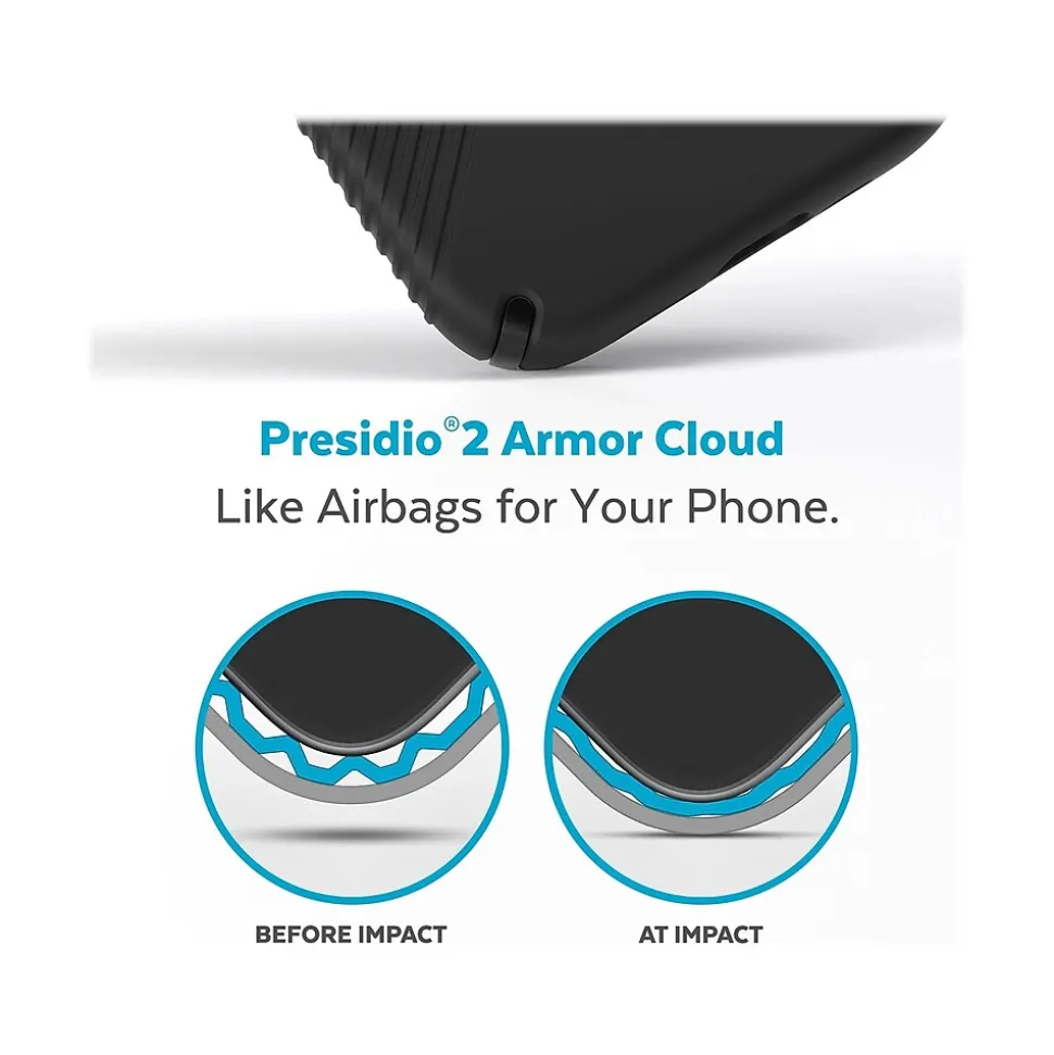 - Presidio2 Armor Cloud technology offers extreme durability with up to 13′ drop protection that cushions and protects your phone like an airbag