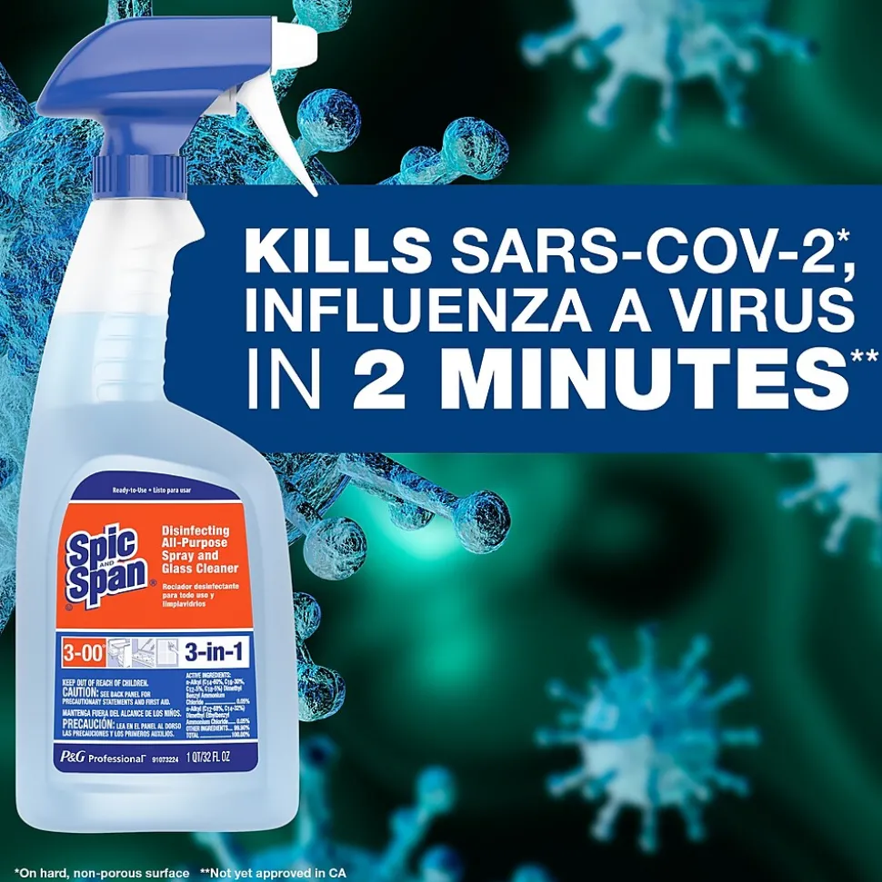 Wash windows and disinfect hard surfaces with this hospital-grade spray cleaner that dries without leaving streaks. Each 128-ounce bottle fills multiple spray bottles, and this 3-count case provides a consistent supply for regular cleaning jobs. This Spic & Span cleaner has a fresh scent to leave a pleasant fragrance lingering on cleaned surfaces.
