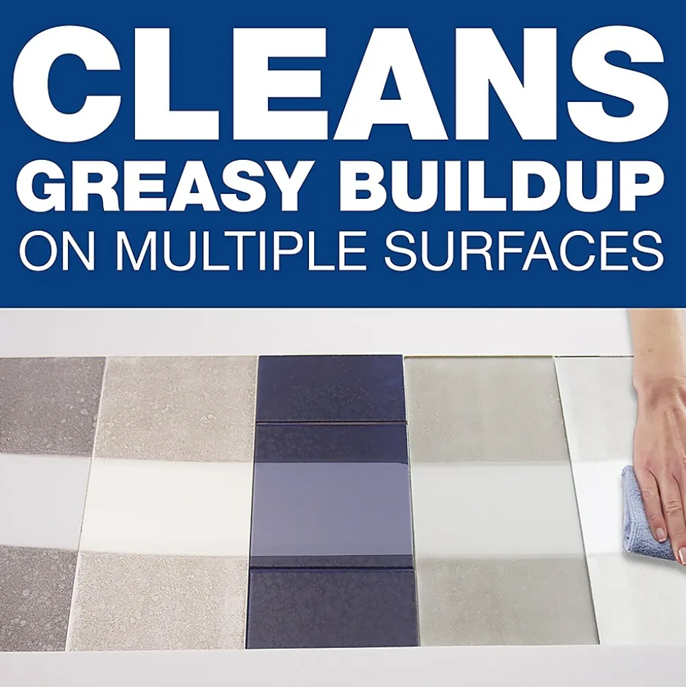 - Patented, dual-solvent formula designed to dissolve greasy soils to provide easy wipe-up, then evaporate to leave surfaces streak-free and disinfected