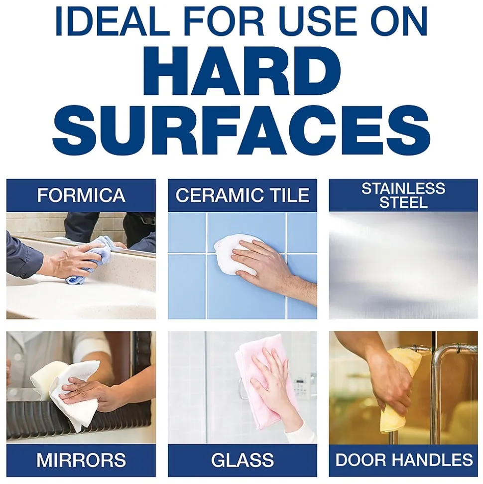- Works on a variety of surfaces including countertops, tables, stainless steel and glass