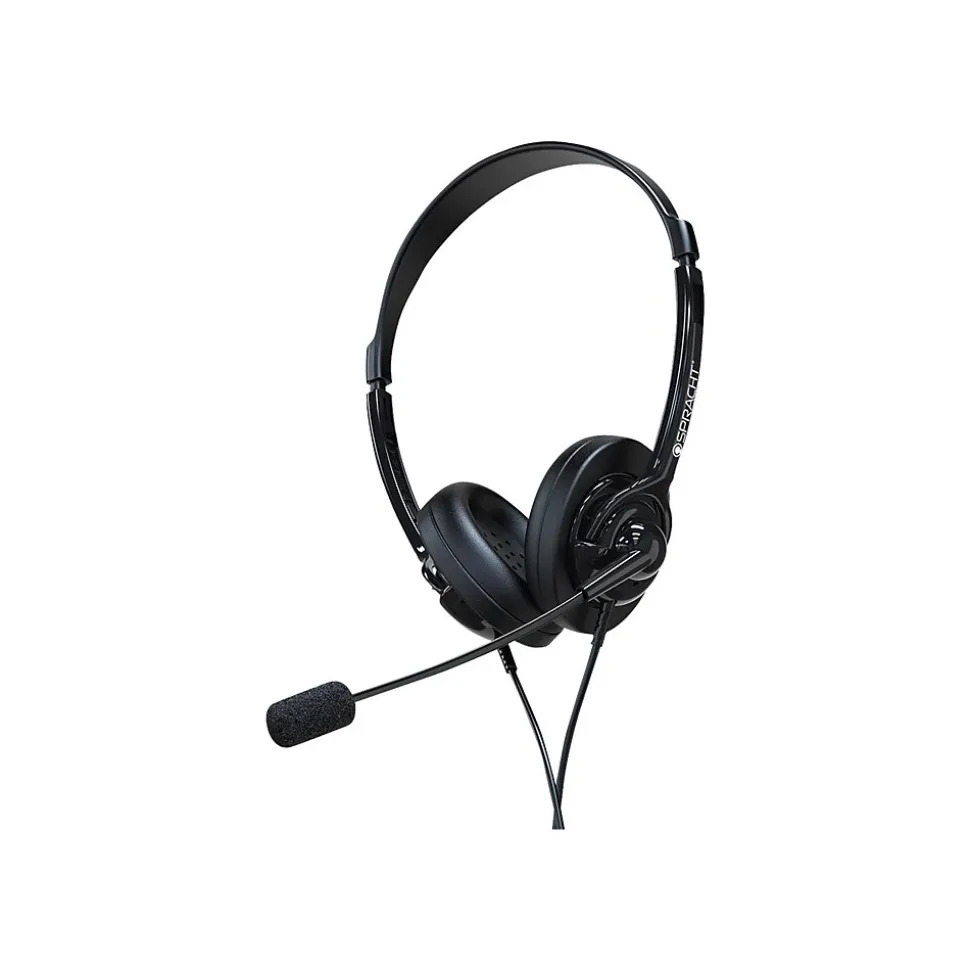 Take calls in comfort all day with this stereo headset. Featuring an adjustable headband and leatherette ear cushions, this stereo headset offers lasting durability. The 40-millimeter wide-band speakers deliver clear, full stereo sound, while the noise-canceling microphone helps transmit clear audio in loud environments. A flexible boom arm lets you adjust the microphone’s position for optimal audio quality. This Spracht ZUM stereo headset provides compatibility with various mobile and desk phones with the included 3.5-millimeter and 2.5-millimeter connectors.