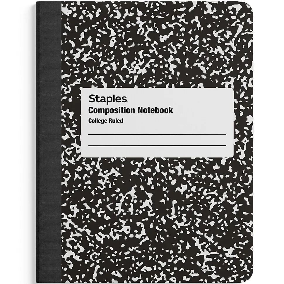 Keep your notes organized with this black and white composition notebook. The college-ruled sheets provide ample room for filling in notes and figures, while the edge binding keeps all your information compiled together, preventing page loss. With its standard size, this Staples 7.5 x 9.75-inchblack and white composition notebook is ideal for keeping track of lectures and business meetings.