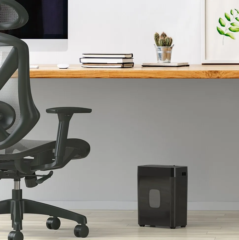 This easy-to-empty Staples Cross-Cut Shredder features powerful blades to keep your disposed documents safe. With a P-4 security level rating designed for day-to-day personal paperwork and emails, this unit takes your data down to 4.3mm x 33mm pieces. The Staples 12-Sheet Cross-Cut Shredder can shred paper, credit cards and staples for home and office use. Auto reverse loading prevent jams and overheating so you can shred documents without wasting time.