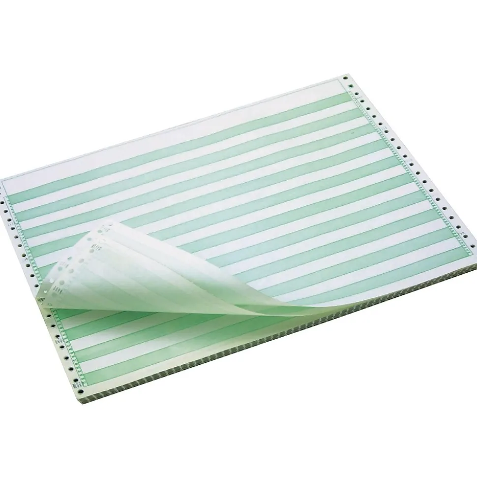 Print easy-to-read line item reports with thisgreen bar computer paper. The continuous format is ideal for printing long inventory or payroll lists, and the alternating bar pattern with numbered lines lets you quickly scan each page for essential information. Featuring perforated edges, thisgreen bar computer paper resists puckering and jamming for smooth, effortless printing.