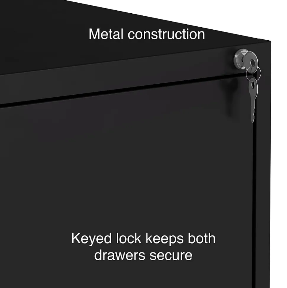 Expand your business filing system with this light duty lateral file cabinet. Two generously sized drawers offer ample space for organizing and storing paperwork, while the keyed lock keeps sensitive paperwork stored securely inside. The durable metal construction stands up to frequent use in your home office or smaller professional workspace. Each drawer accepts letter-size file folders, so you can store a wide range of documents in this black two-drawer file cabinet.