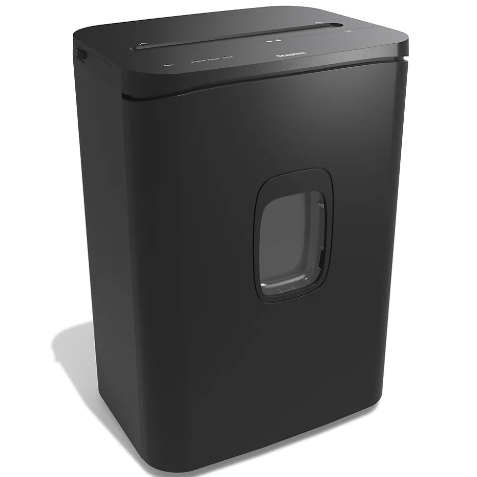 - Provides shredding for: paper, credit cards, standard staples, small paper clips and CDs/DVDs