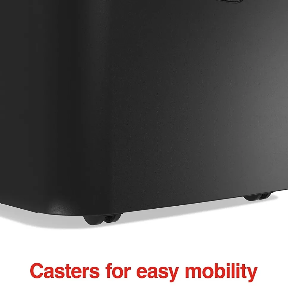 This easy-to-empty Staples Micro-Cut Commercial Shredder features powerful blades to keep your disposed documents safe. With a P-4 security level rating designed for business paperwork and emails, this unit takes your data down to 4.3mm x 12mm pieces. The Staples 20-Sheet Micro-Cut Shredder can shred paper, credit cards, standard staples and CDs/DVDs for business use. Safety temperature indicators and auto reverse loading prevent jams and overheating so you can shred documents without wasting time.