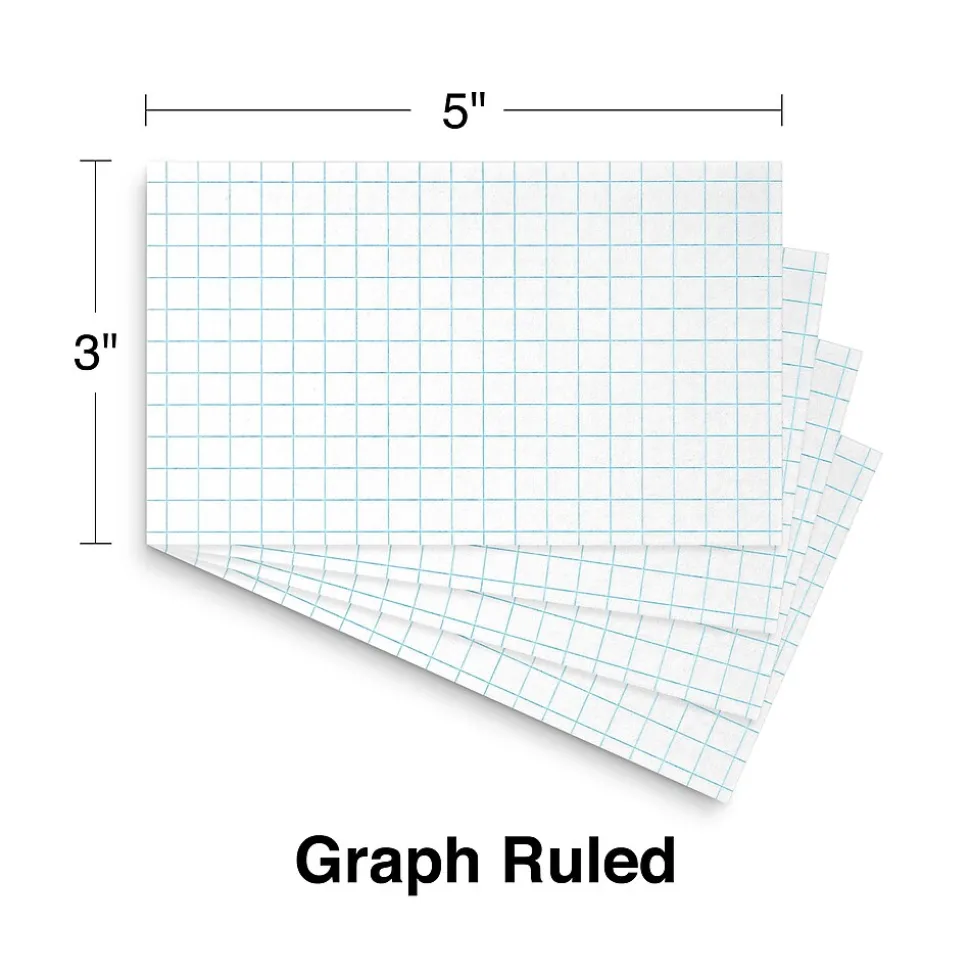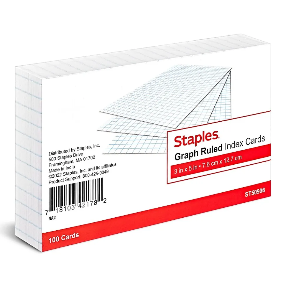 Stock your office supplies closet with this large pack of white index cards. The grid ruling lets you easily write down mathematical equations and graphs. These sturdy Staples 3″ x 5″ white graph-ruled index cards withstand frequent handling.