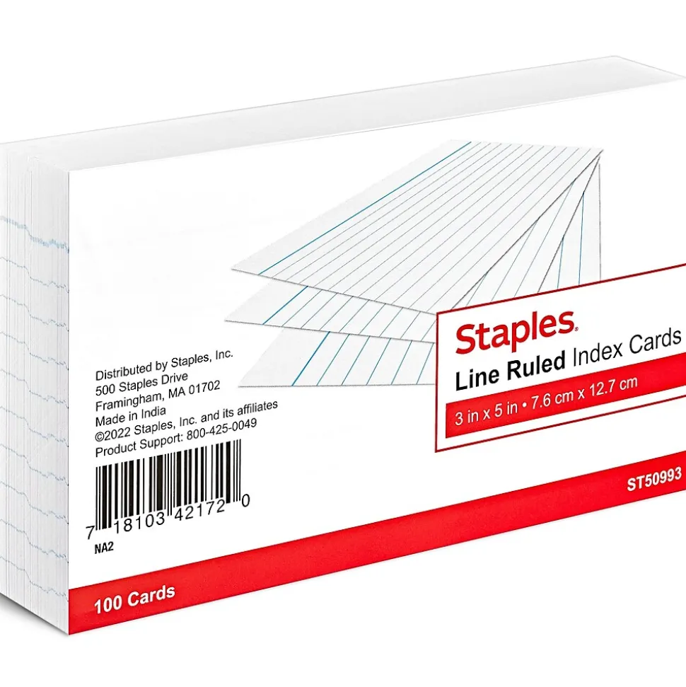 Handle your note-taking needs with this 100-pack of white index cards. The precision-cut edges help ensure the cards are the exact same size, making presentations look professional, while the line-ruling keeps your writing legible. These Staples Business Essentials 3 x 5-inch line-ruled index cards feature blank backs for sketches.