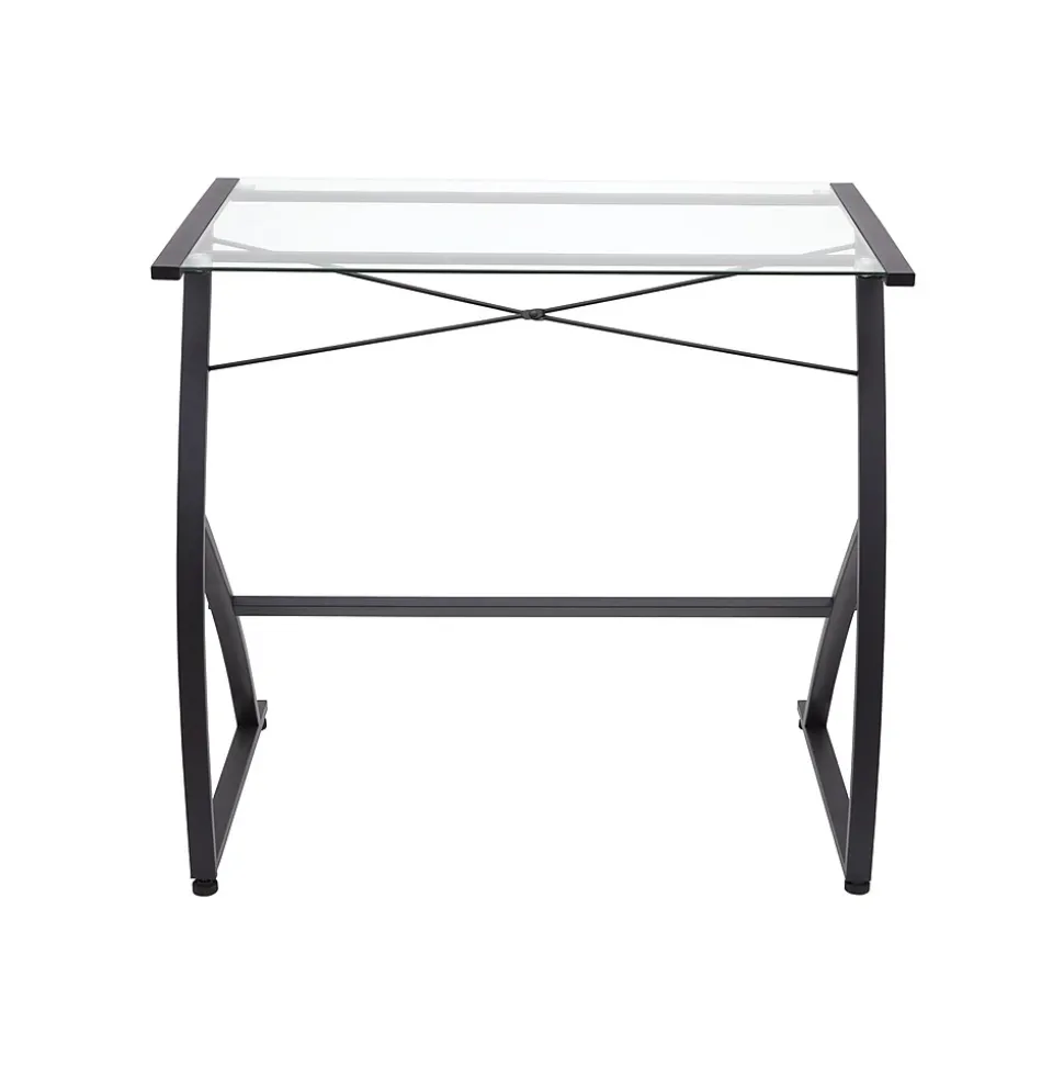 - Tempered-glass top with solid black metal frame refreshes your workplace without compromising functionality