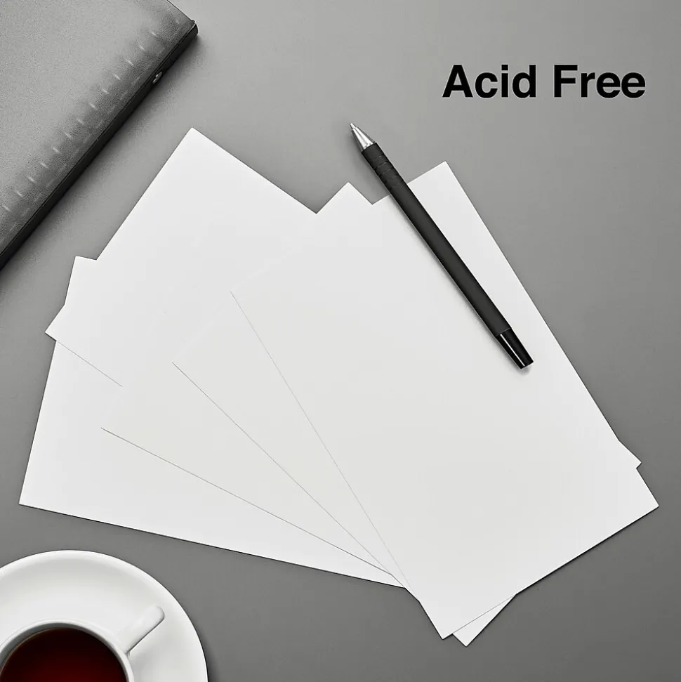 | Color Family Acid content determines how long the paper or product will last before breaking down. The acid level is measured by the pH (potential of hydrogen) on a scale from 0 to 14. Acid Free (alkaline) paper has a higher pH (above 7), has a longer life expectancy, and is less likely to discolor and break down over time. | Acid Free |