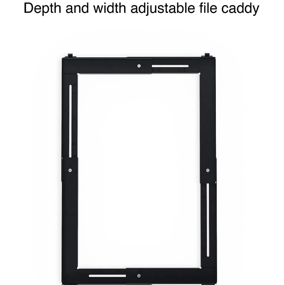The file caddy adjusts from 18″ to 26.5″, allowing it to fit both letter and legal-size file cabinets. Made with solid metal construction that supports the weight of most cabinets. Backed by a 7-year limited warranty keeping you satisfied for years to come