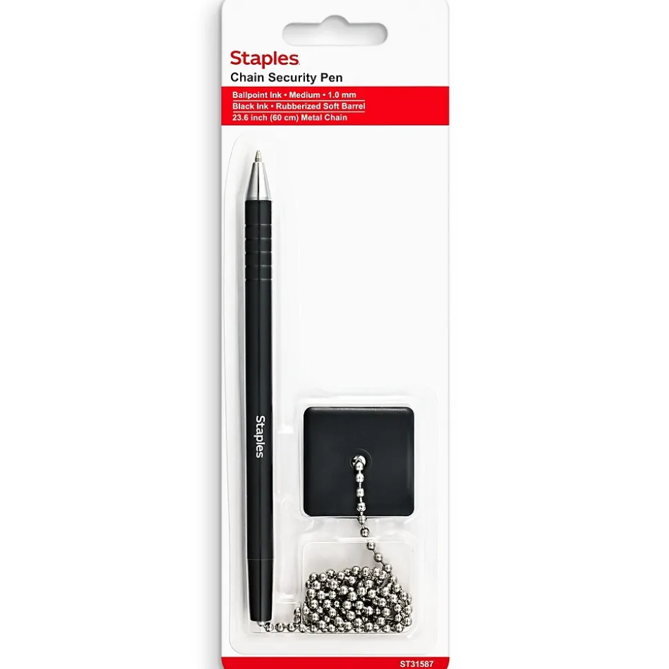 - Keep your pen from wandering off with customers by using this Staples Anchor medium-point 1.0mm black anchor pen.