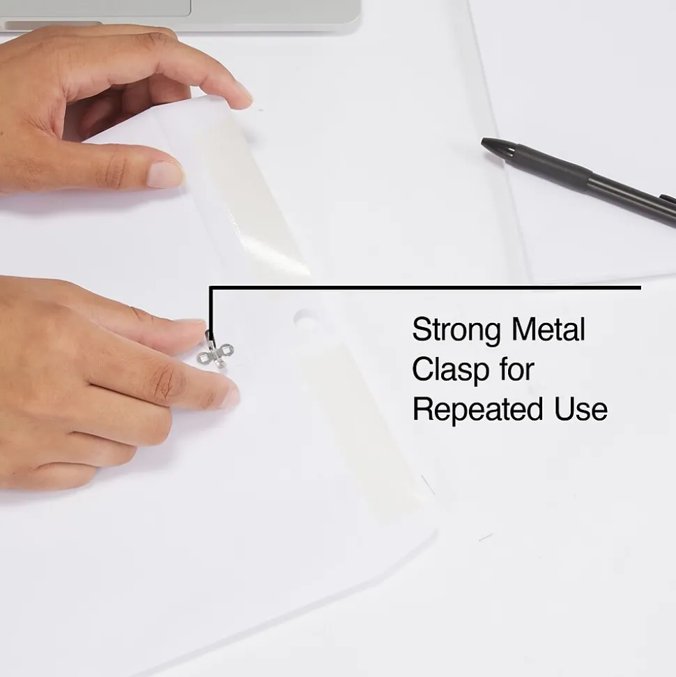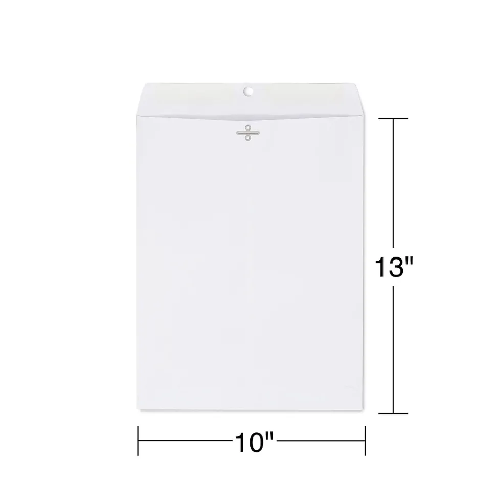 Use these Staples white wove envelopes to keep papers protected. The white paper of these envelopes provides the high contrast needed to make labeling easy to read, while the gummed flap and reusable metal clasp help ensure that enclosed documents stay safe and private. These Staples white wove envelopes are ideal for storing and mailing important files.