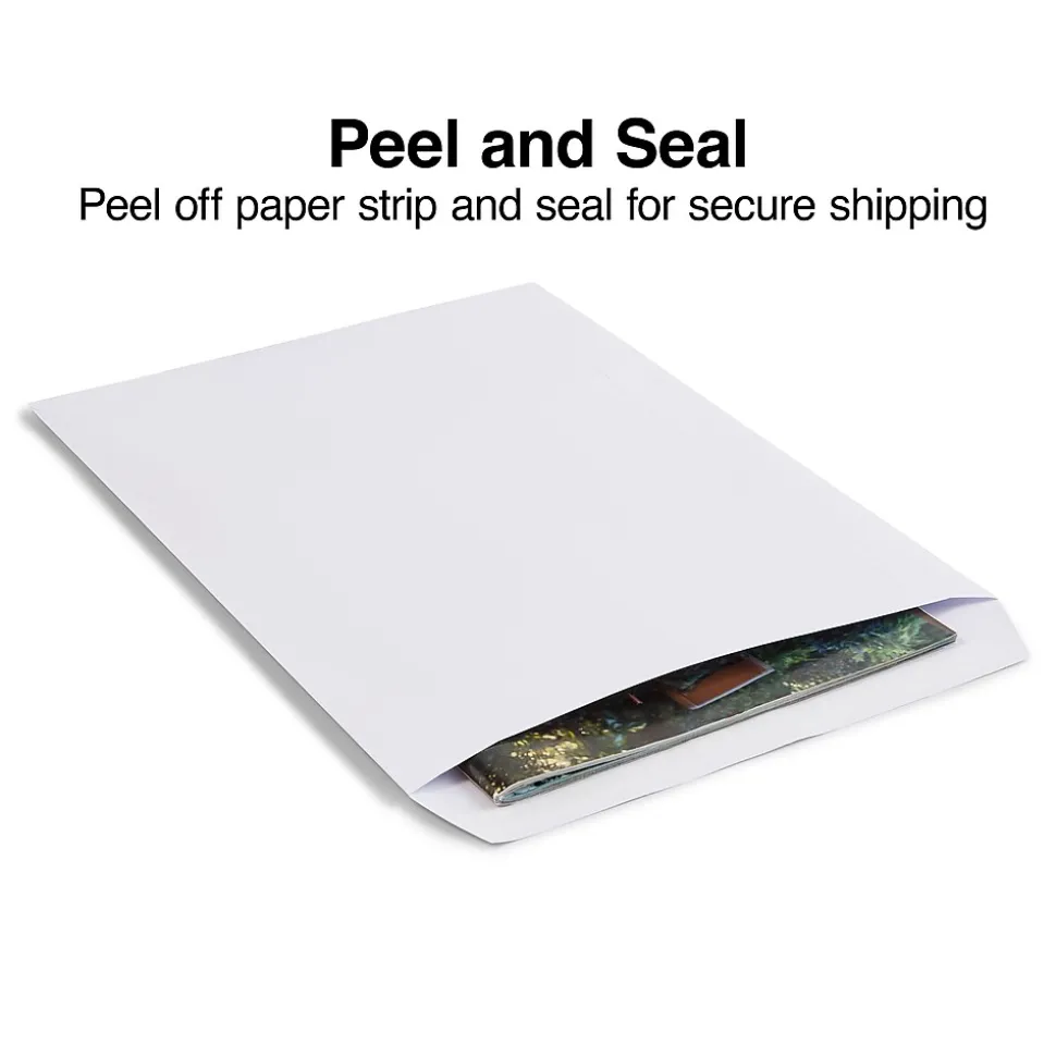 Transport important documents in these Staples EasyClose catalog envelopes. Each envelope in this 250-count box features an EasyClose seal that allows you to simply peel and press the envelope securely shut without the mess of adding moisture. These Staples EasyClose catalog envelopes are ideal for sending reports, magazines or brochures laid flat without creases.