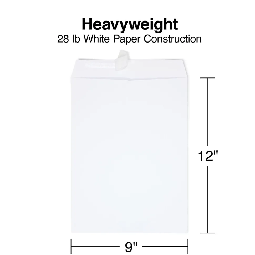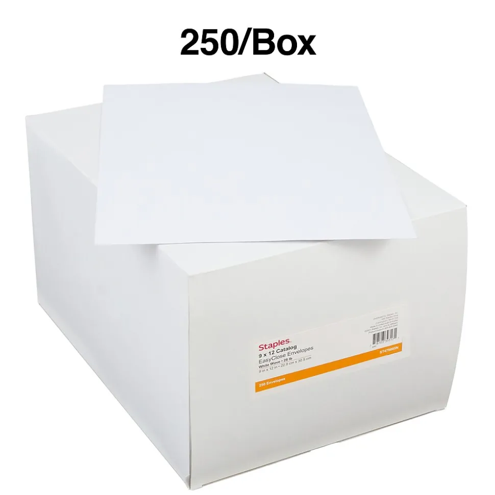 Protect documents, catalogs and reports in transit with this box of 250 EasyClose catalog envelopes. Their 28-pound white wove material easily accommodates a variety of bulky materials, and the generous dimensions provide extra room for bulkier letter-size documents. These Staples white wove catalog envelopes feature QuickStrip closures that offer a strong seal without the need for moisture.