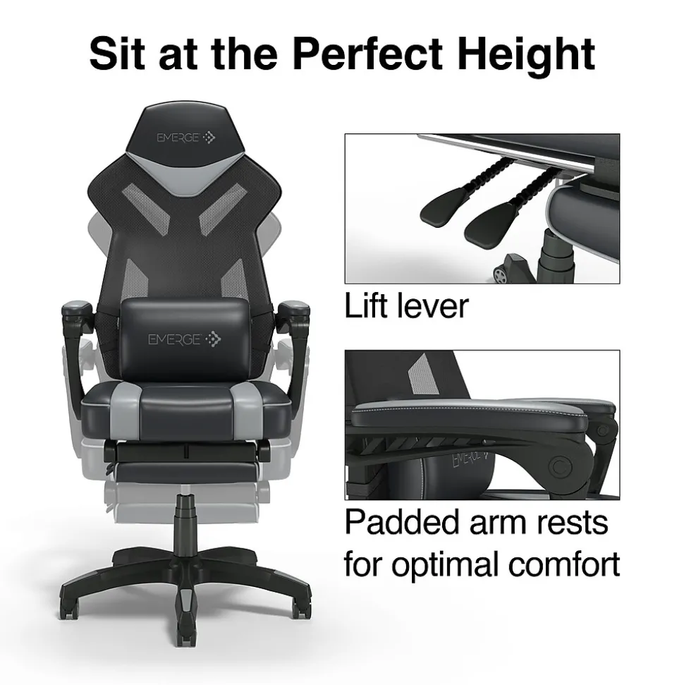Dominate the competition in your Vomax gaming chair. This chair provides maximum comfort and integrates a lounging experience into long hours of gaming with a retractable footrest, 135 degree recline, padded headrest and lumbar support pillow. Customize your seating position with seat height adjustment and tilt lock. With advanced features that can easily be fine-tuned to your preferences, you’ll soon be ready to take on your next challenge.