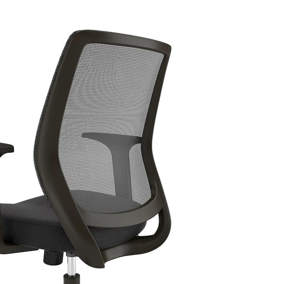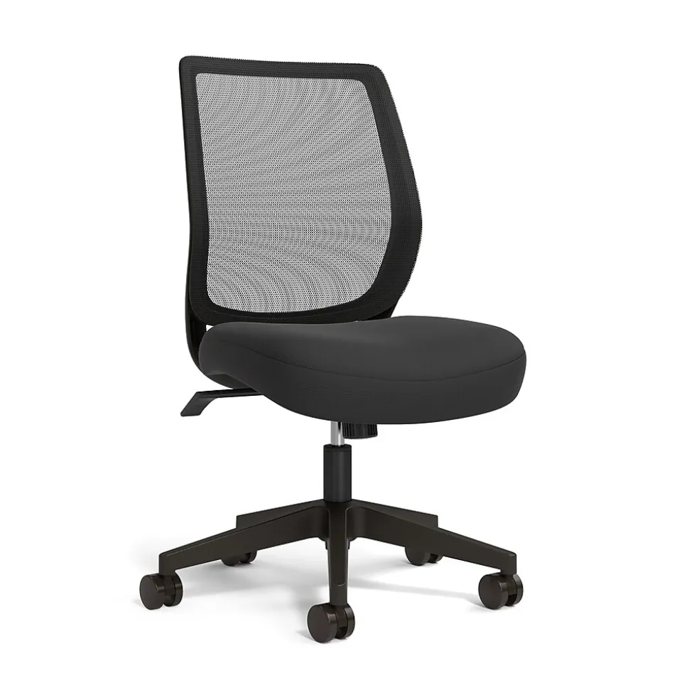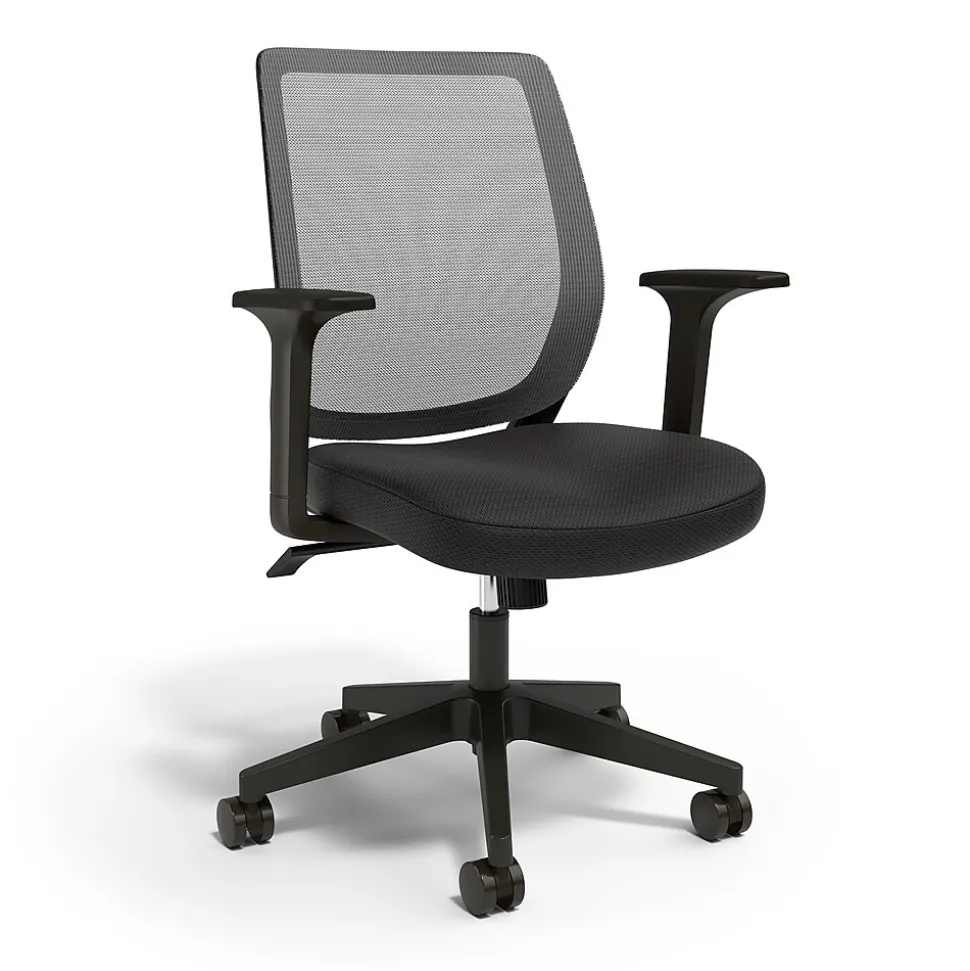 Elevate your office with this mesh-back black task chair that blends contemporary design with dependability and excellent value. With sleek lines and a simple silhouette, this modern chair creates a low-key stylish aesthetic for your workspace. The five-star base and rolling casters ensure easy movement, giving you efficiency and mobility all day long. The versatile Staples Essentials fabric and mesh task chair can be assembled with or without its adjustable arms, and you can personalize your comfort and experience with the height adjustment lever and the contoured padded seat. Convenience, efficiency and value are the core of this contemporary office essential.