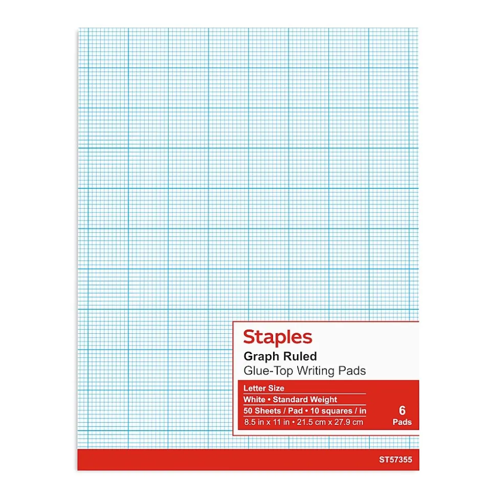 Solve mathematical equations, draw scales and take notes with this professional notepad. The graph-ruled design makes for easy graphing, while 40 double-sided sheets give you ample room to complete projects. Featuring a white background, you can easily view what is written on each page. This Staples letter-size graph-ruled white notepad includes a glue top, letting you cleanly remove each sheet without damage.