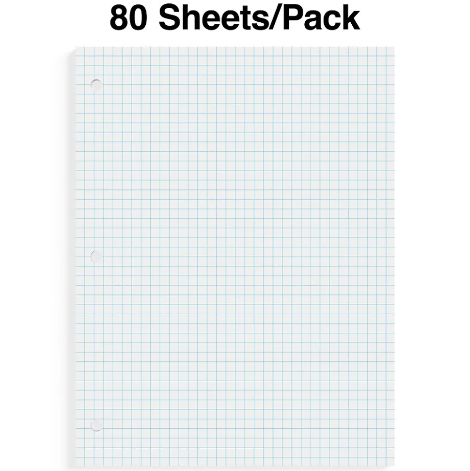 Draw with precise detail using this graph ruled filler paper. Each sheet is three-hole punched for convenient use with standard three-ring binders, while the light blue printed lines make whatever you draw stand out. This Staples Business Essentials 8 x 10.5-inch white graph ruled filler paper comes with 80 sheets in each pack, so there’s plenty of room to work.