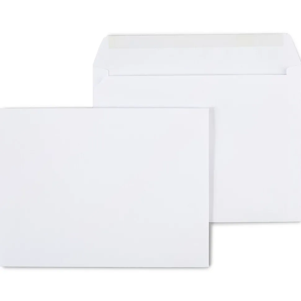 Easily ship items with these booklet envelopes. With a 28-pound paper construction, these envelopes are durable, helping get mail shipped safely, while the side-opening flap is heavily gummed, keeping invoices, reports, and other important documents secure. These Staples booklet envelopes are made with white wove paper material, and the side-opening flap is convenient for inserting and removing large items.